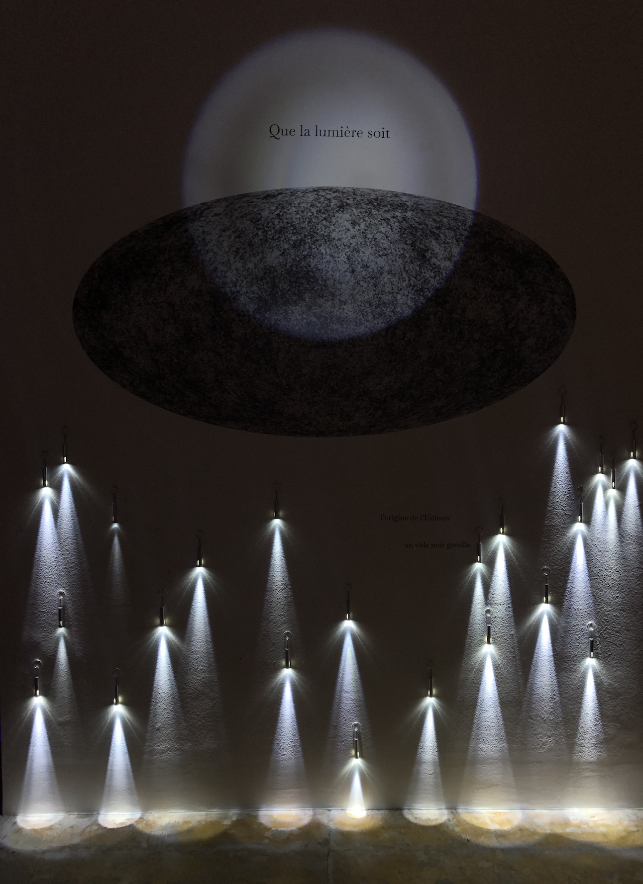 L’exposition se visite avec une lampe torche Plongés dans la pénombre et munis de lampes torches pour y voir plus clair, on pénètre dans une pièce jonchée de livres, d'œuvres miniatures et d’objets hétéroclites. On y devine un récit polyphonique composé de pièces à conviction piochées dans la bibliothèque universelle et dans le vestiaire personnel. Une voix scande les mystères du monde, nous guide d’hypothèses en démonstrations, empruntant tour à tour le chemin de la science et des mythes. Le lexique technique et poétique s’emploient à faire et défaire le sens, créant un effet de loupe et des contre-plongées musclées dans l’énigme de la vie. Rien ne dit que l’ordre y sera victorieux. Car il nous faut accepter la tension vitale de l’ordre et du désordre qui dialoguent à travers nous jusqu’au dernier souffle, où le désordre l’emporte.